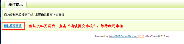 若果还有其他的网站要提交备案,请不要点击”确认提交审核”,可以返回到备案系统首页